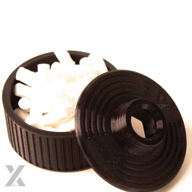 Dit nieuwe ontwerp maakt het filter nog stabieler en robuuster. Het deksel is zo ontworpen dat het gemakkelijk naar binnen kan worden gedraaid, wat de stabiliteit verder vergroot. Ons gloednieuwe logo, een gestileerde "X", geeft het filter een coole en stijlvolle uitstraling die niet alleen de fetishscene aanspreekt.