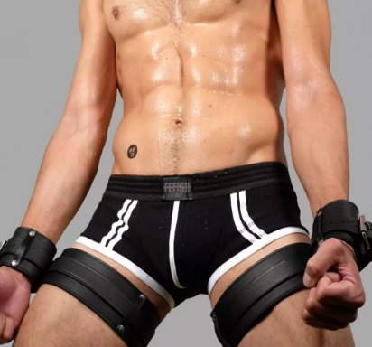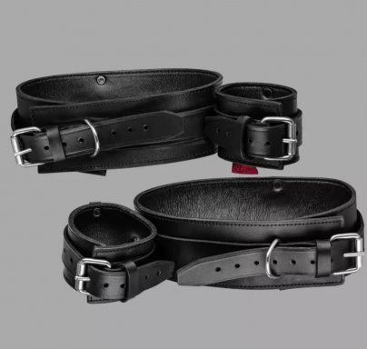 Soms is eenvoud de beste vorm van bondage. Deze leren boeien combineren dijboeien en polsboeien voor een effectieve fixatie die de polsen aan de dijen vastmaakt en de bewegingsvrijheid aanzienlijk beperkt. De polsboeien zijn permanent aan de dijboeien bevestigd, waardoor de positie duidelijk gedefinieerd blijft en directe controle mogelijk is. Sexy, duurzaam en comfortabel, zelfs bij langdurig dragen.